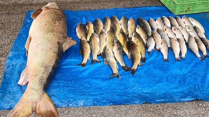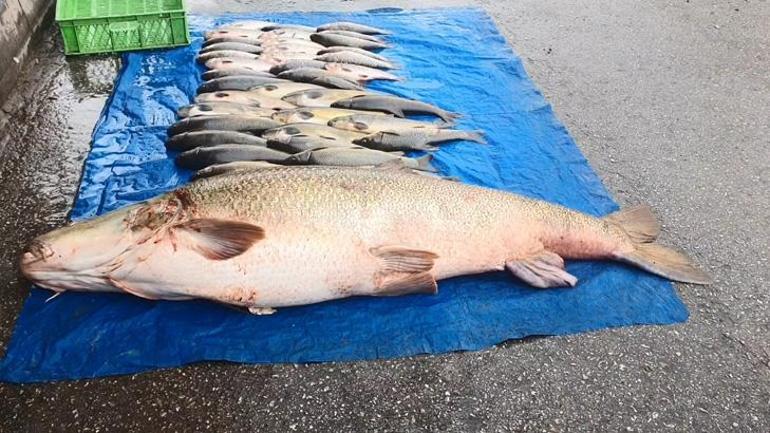 Elazığ’da amatör balıkçılar, Murat Nehri’nde 52 kiloluk dev bir turna balığı yakaladı.
