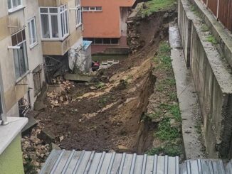 Edirne’de sağanak yağış nedeniyle bir binanın istinat duvarı yıkıldı. Duvarın yıkıldığı anlar güvenlik kamerasına yansıdı.