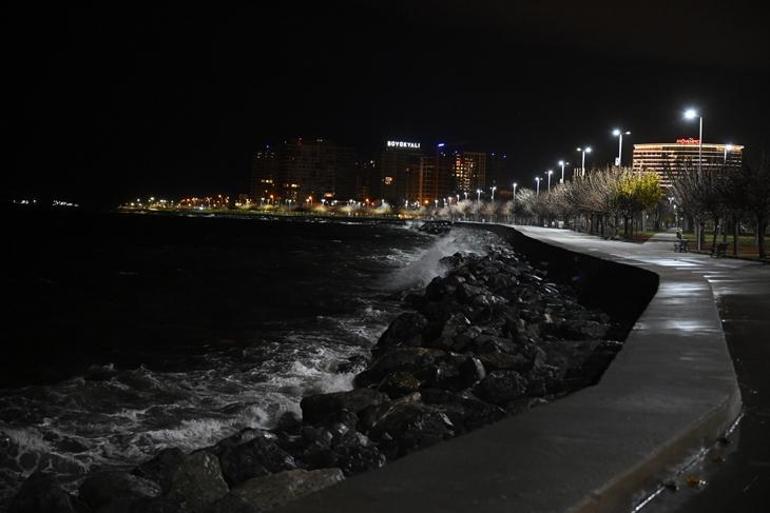 Sahil şeridinde gece yürüyüşüne çıkan ve balık tutan vatandaşlar, fırtına nedeniyle vakit zaman sıkıntı anlar yaşadı.