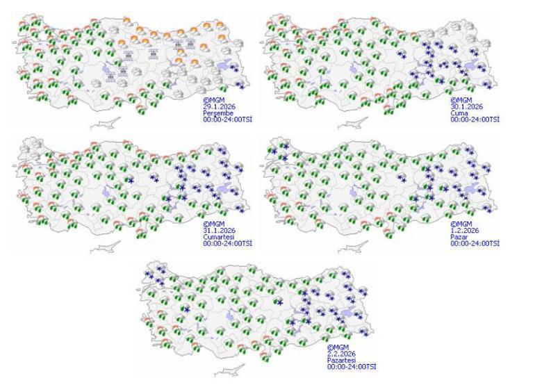 Paylaşımda, bugün Malatya, Elazığ, Adıyaman, Şanlıurfa’nın kuzeyi, Diyarbakır, Batman, Mardin, Siirt’in güneydoğusu, Hakkari ve Şırnak etraflarında kuvvetli sağanak, Malatya ve Elazığ’ın güneyi, Diyarbakır’ın kuzeyi, Hakkari ve Şırnak etraflarında yüksek bölümlerde karla karışık yağmur ve kar formunda yağış beklendiği belirtildi.